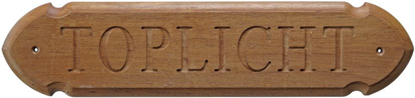 Gerades, klassisches Namesschild aus Teakholz. Das Schild ist geeignet zum Aufschrauben von Metallbuchstaben, zum Einschnitzen von Buchstaben oder zum Gravieren.