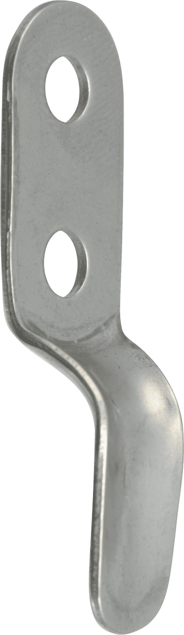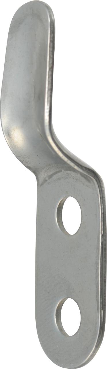 Funktionaler Haken für leichte Fender und zur Persenningbefestigung. Aus kräftigem Messingblech (Materialstärke 2 mm) gedrückt, sauber vernickelt.