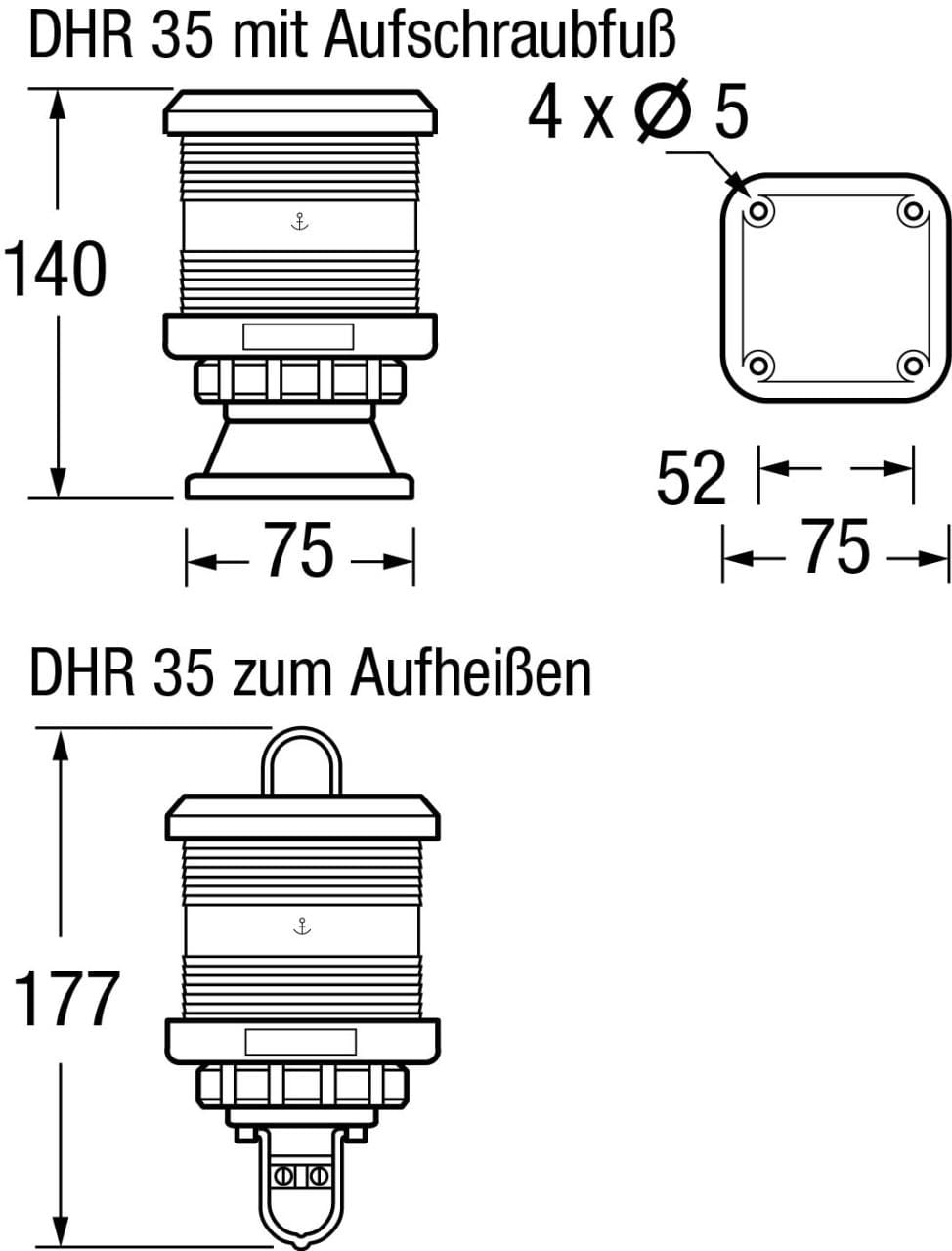 Die Rundumlichter der Serie 35 des niederländischen Herstellers DEN HAAN ROTTERDAM punkten durch kompaktes Design und robuste Bauweise. Das Gehäuse besteht aus schwarzem, glasfaserverstärktem Polycarbonat, welches korrosionsbeständig, seewasserresistent und nicht magnetisch ist.