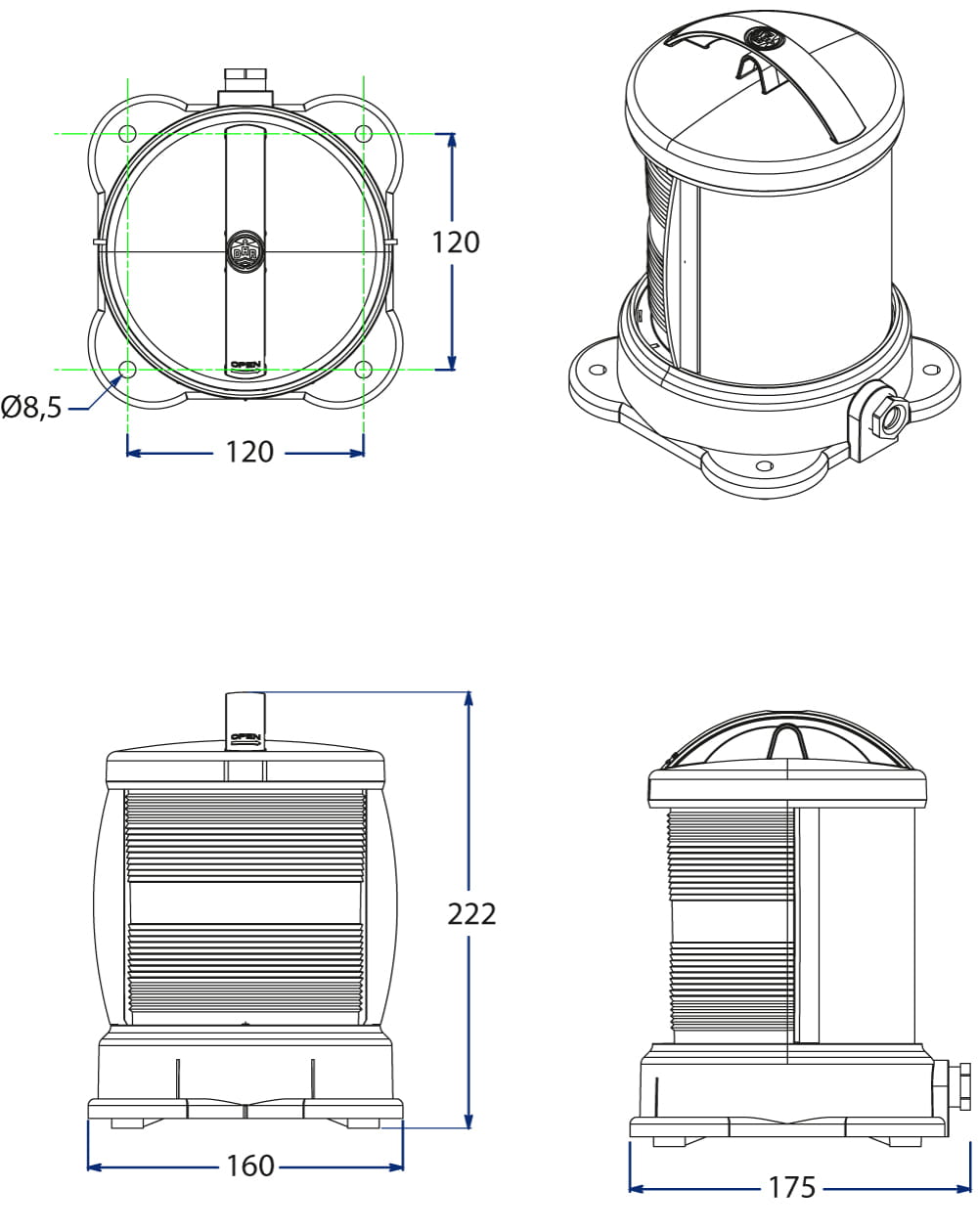 Die Navigationslichter haben eine PG13-Kabelverschraubung und die Schutzart IP56.