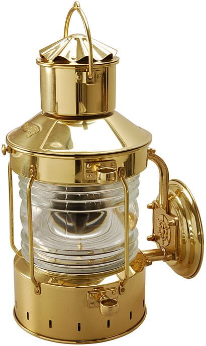 Zur Wandmontage mit stabil verschraubtem rundem Wandhalter aus Messingguss bestückt. Die klare Fresnellinse und der Mattglas-Boden sorgen für gute Lichtverteilung. Ursprünglich für den Bordgebrauch entwickelt, finden diese Positionslaternen auch heute noch Verwendung auf Traditionsschiffen, wenn es um die klassische Optik geht.