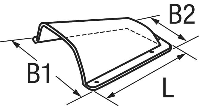 Flache, schlichte Haube aus Edelstahl-Blech zur Decks- und Seitenmontage.
