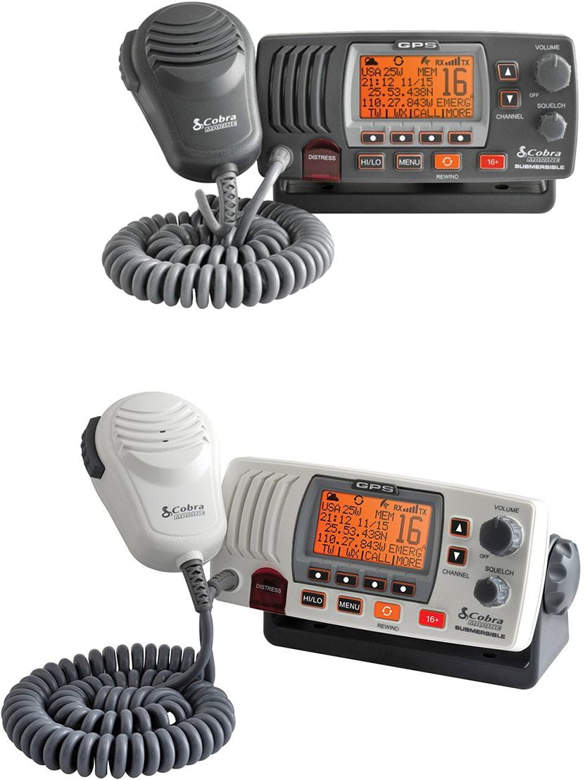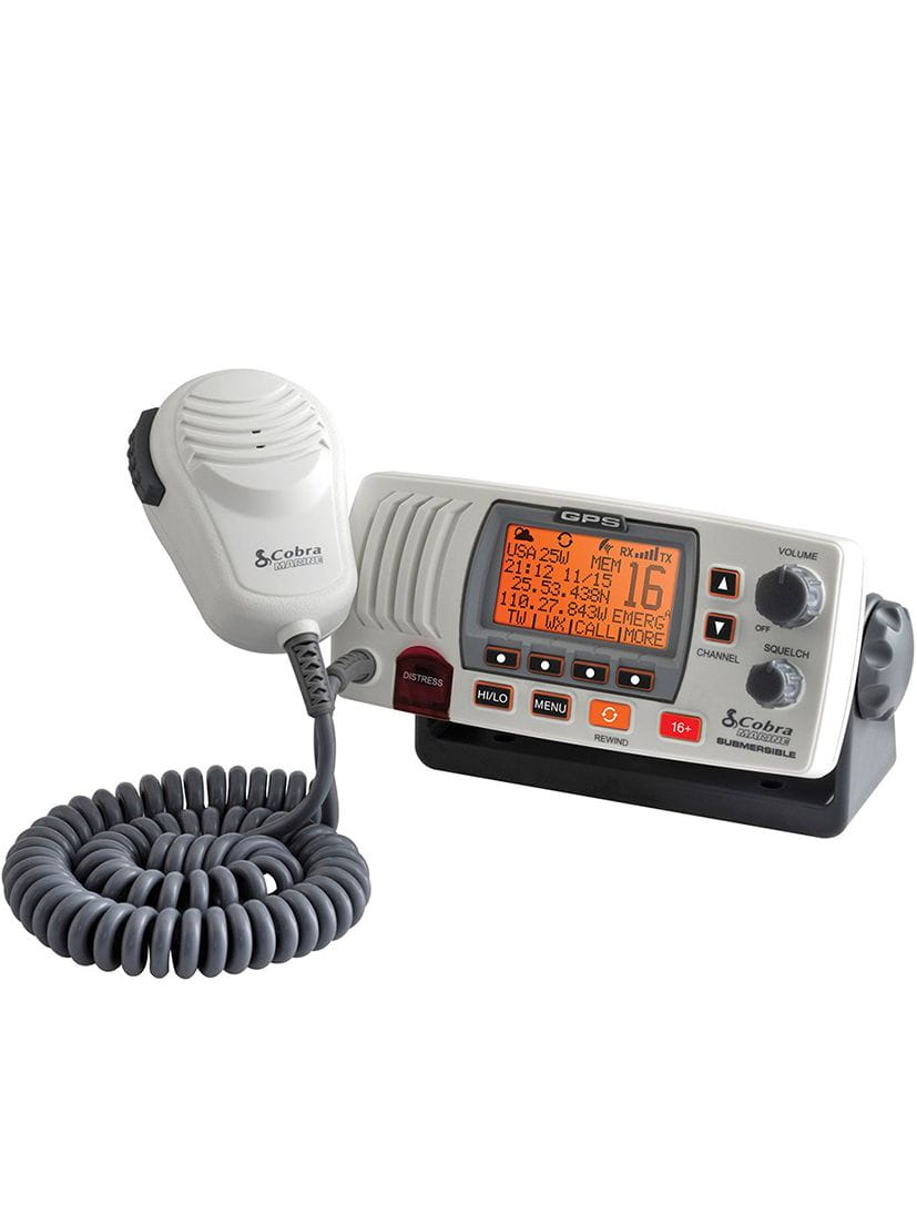 COBRA MR F77 mit integriertem 56-Kanal GPS-Empfänger. Zeigt die aktuelle Schiffsposition im Display an und überträgt diese Position automatisch bei einem Notruf über die Distress-Taste. Über die NMEA 0183-Schnittstelle sind die GPS-Daten auch von anderen Navigatiosgeräten an Bord nutzbar.