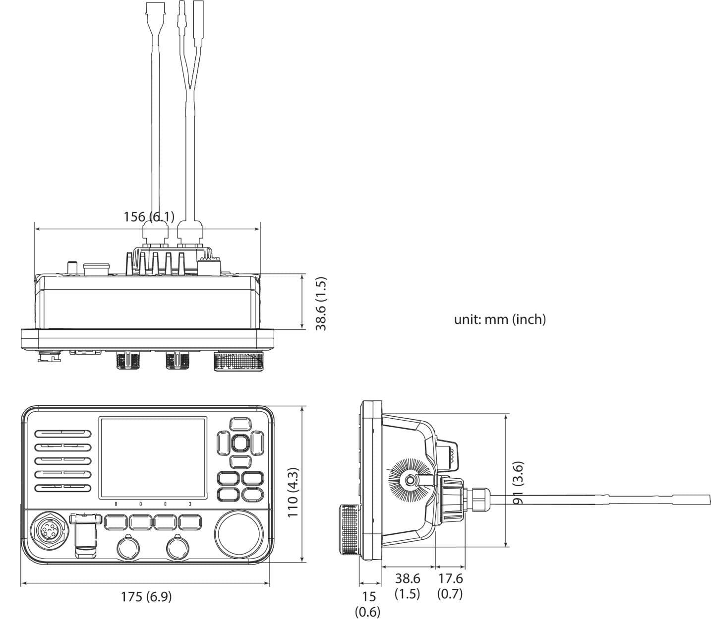 Mit seinem neuen flachen Design lässt sich das IC-M510E (Tiefe: 53,6 mm) sowohl in eine Instrumententafel einbauen als auch schwenkbar installieren.