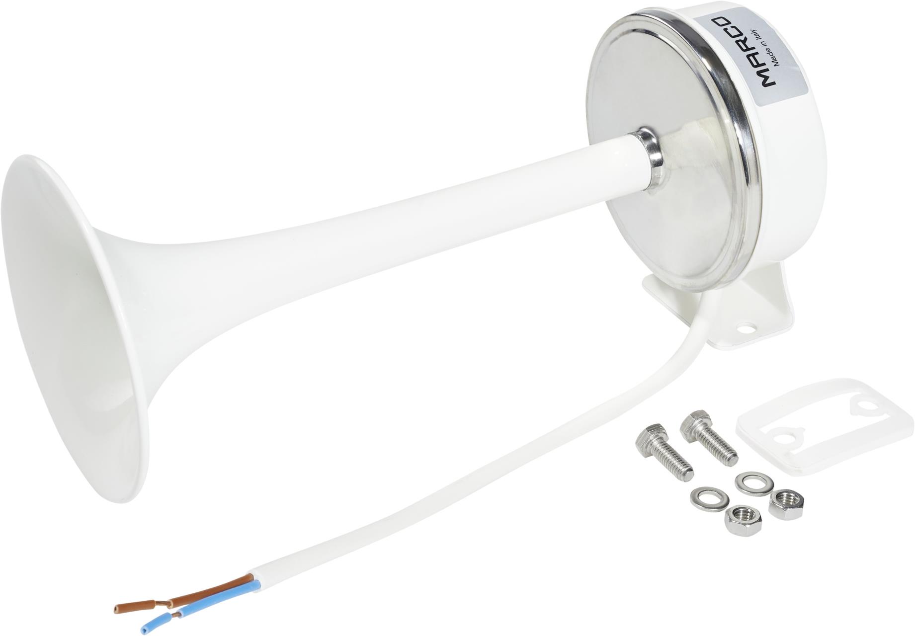 Das Signalhorn hat eine geringe Stromaufnahme. Lieferbar für 12 Volt und für 24 Volt.